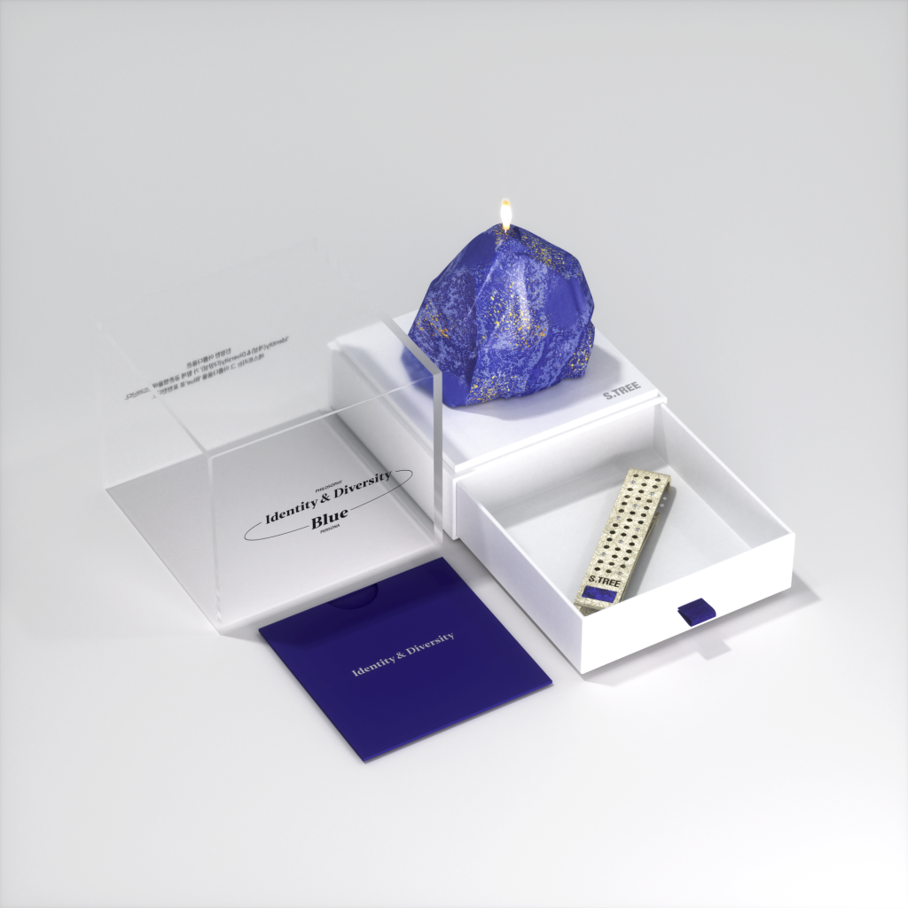 S.TREE’s distinctiveness is represented by the identities of blue stones, holes, and scratches.