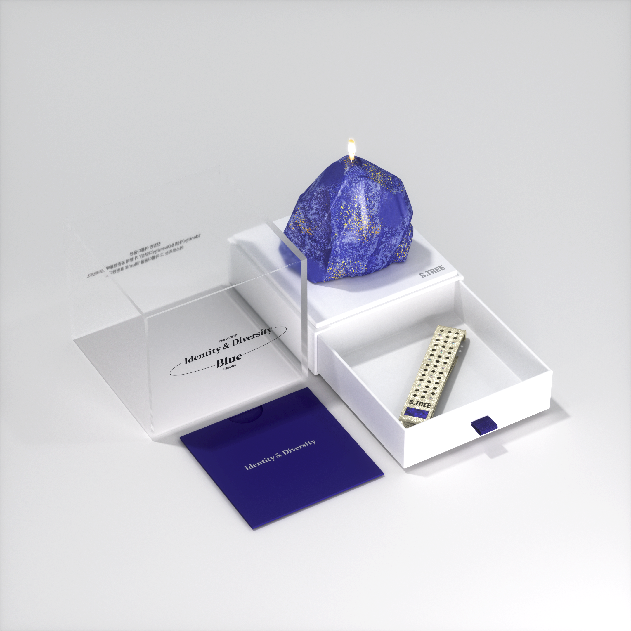 The identities of blue stones, holes, and scratches represent the uniqueness of S.TREE.